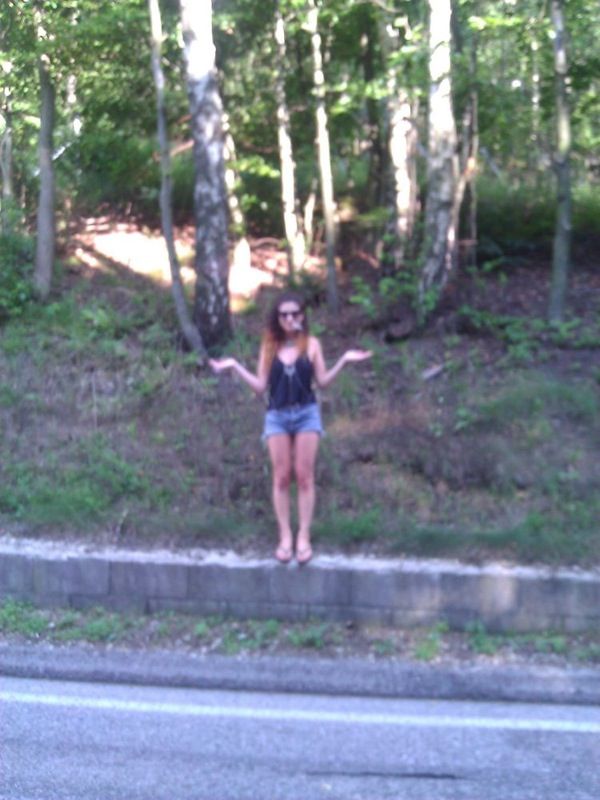 haha obviously we had a car break down - sabi's trying to get some other cars attention :P |